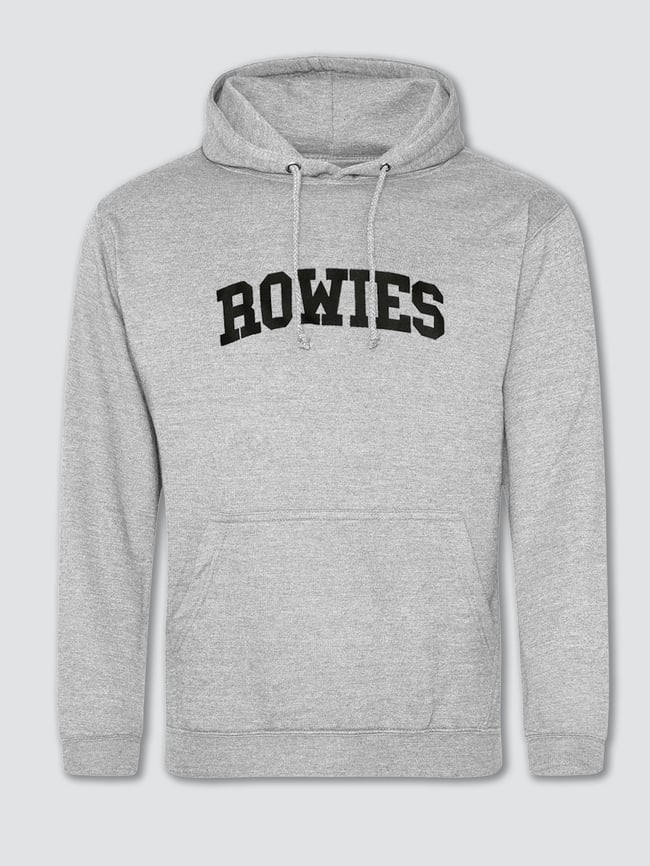 Rowies college design on grey t-shirts, sweatshirts and hoodies. In the style of the classic college look .